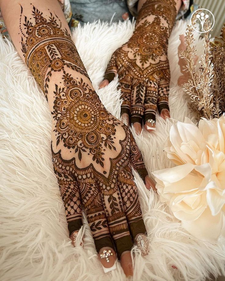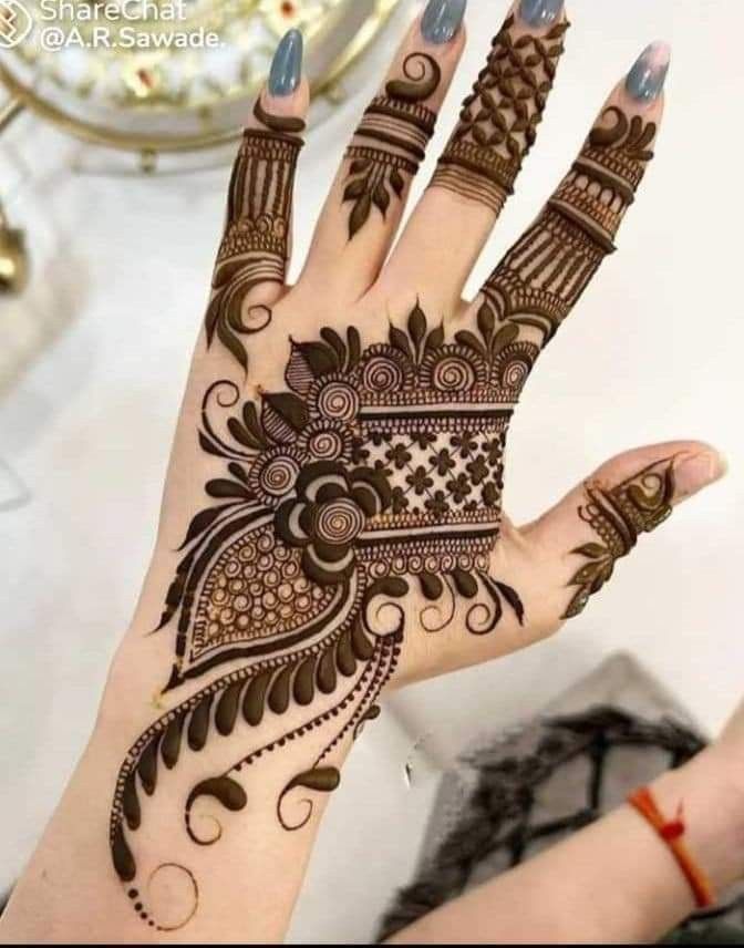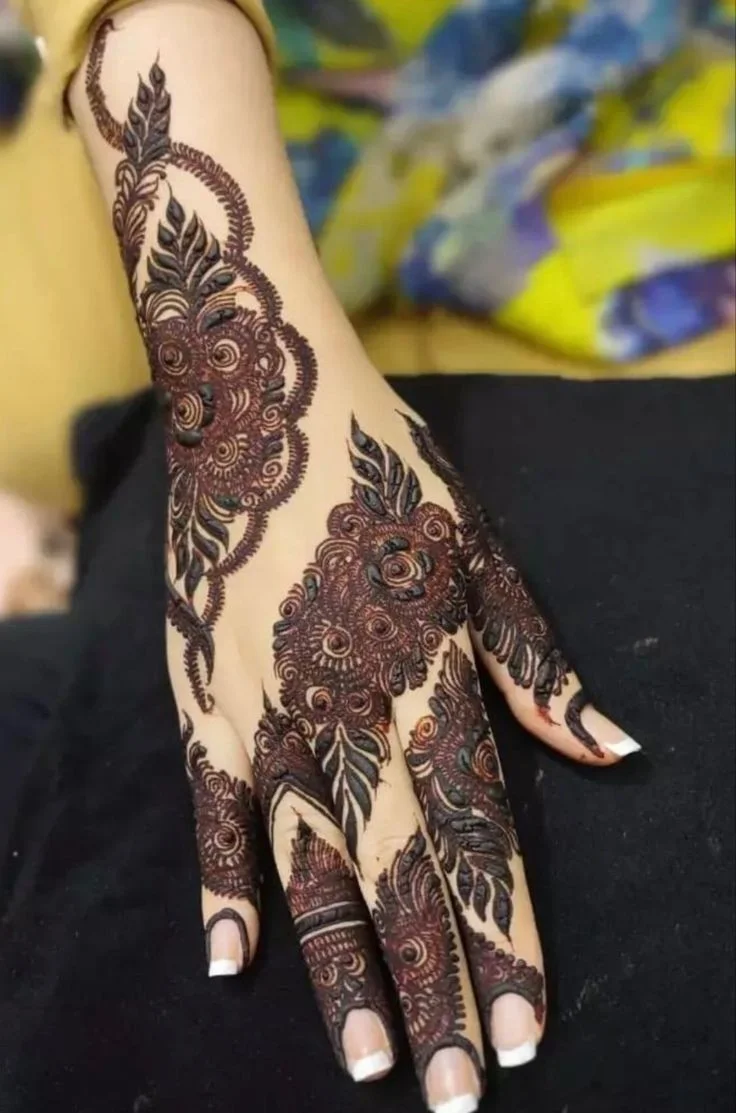 Experience elegance with these chic back hand mehndi patterns, which combine classic elements . Wear gorgeous back hand mehndi designs on your hands to create a statement with each movement.