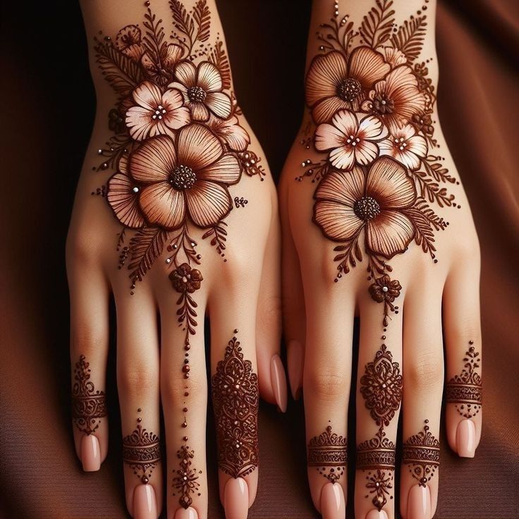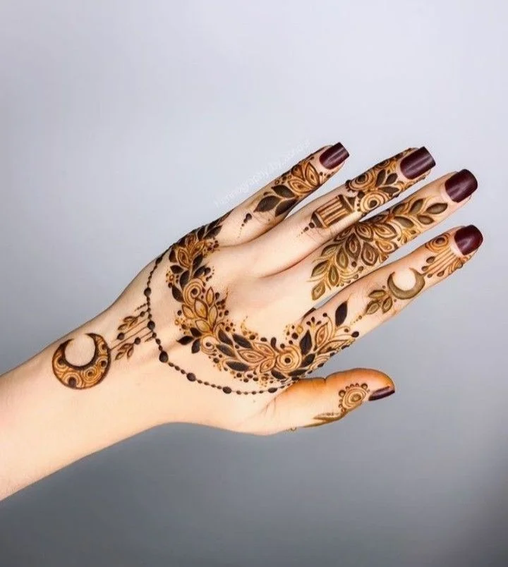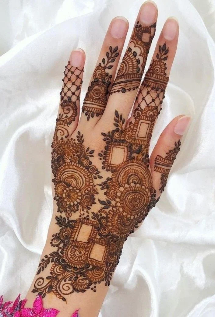 Explore the fascinating world of contemporary back hand mehndi designs, where innovation and tradition collide. Our collection features modern designs, geometric patterns, and elegant motifs that revitalize the age-old craft of mehndi.  These contemporary back hand mehndi designs are perfect for festivals, weddings, or even informal gatherings where you want to make a statement. Consider decorating your hands with asymmetrical patterns that convey confidence and inventiveness, or patterns that combine delicate flowers with strong lines.