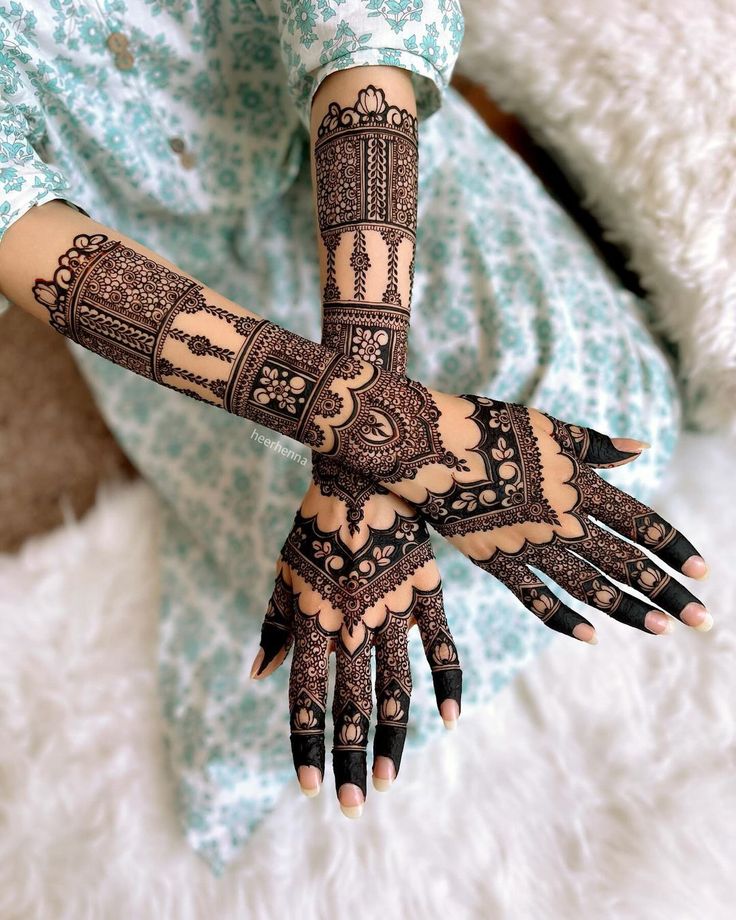 With our intricate back full hand wedding mehndi designs, which each convey a tale of tradition, love, and grace, you may steal the show on your special day. These beautiful designs, which include peacocks, paisleys, floral vines, and intricate fillers that represent joy and prosperity, are painstakingly created to cover your hands with magnificent beauty. As you celebrate the most significant day of your life, let your hands become a work of everlasting beauty that exudes sophistication and charm.